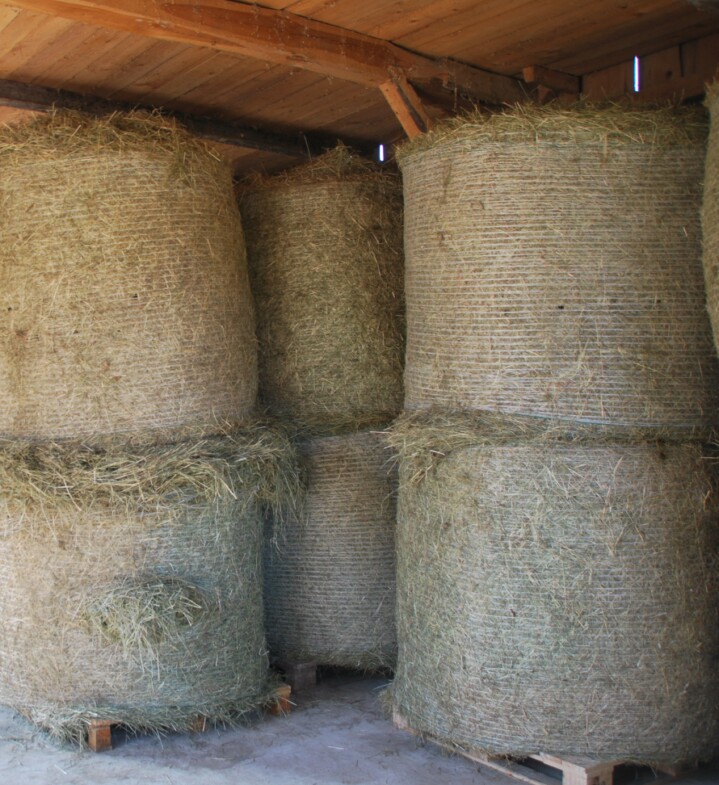 Das Raufutterangebot besteht aus bestem bayrischem Wiesenheu. Unser Heu stammt zum Teil von unseren eigenen artenreichen Naturschutzwiesen und ist ausnahmslos Mitte bis Ende der Blüte geschnitten. Das Verhältnis von Rohfaser zu leichtverdaulichen Kohlenhydraten kommt hier den Bedürfnissen eines Pferdes entgegen, ohne in den Punkten Proteinqualität und Heuqualität Kompromisse einzugehen.